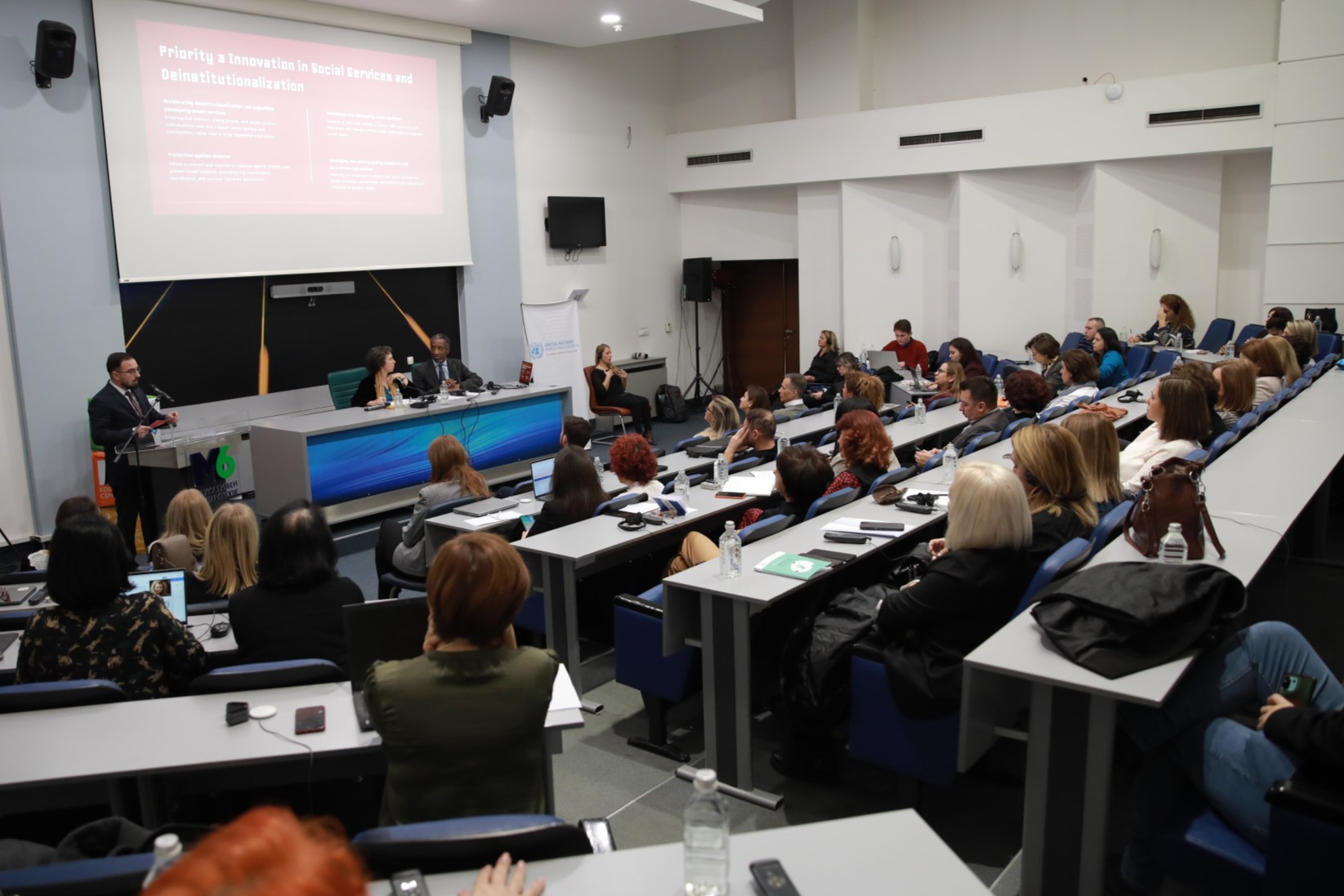Тој зборуваше за забрзување на деинституционализацијата и проширување на услугите во заедницата, како и развивање нови услуги за деца во ризик, жртви на злоупотреба, на родово базирано насилство, лица со траума и слично, но и зајакнување на механизмите за превенција и одговор на насилството.