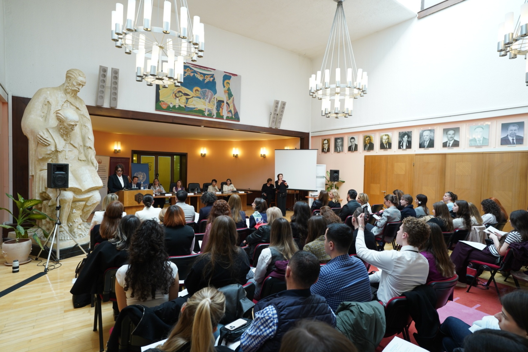 Më shumë se 100 të rinj, përfaqësues të Qeverisë së Maqedonisë së Veriut, profesorë universitarë, përfaqësues të sektorit civil, si dhe përfaqësues të Kombeve të Bashkuara dhe të komunitetit diplomatik, morën pjesë në dialogun e nivelit të lartë kushtuar grave të reja dhe grave lidere, i cili u mbajt sot në Rektoratin e Universitetit “Shën Kirili dhe Metodi” në Shkup.